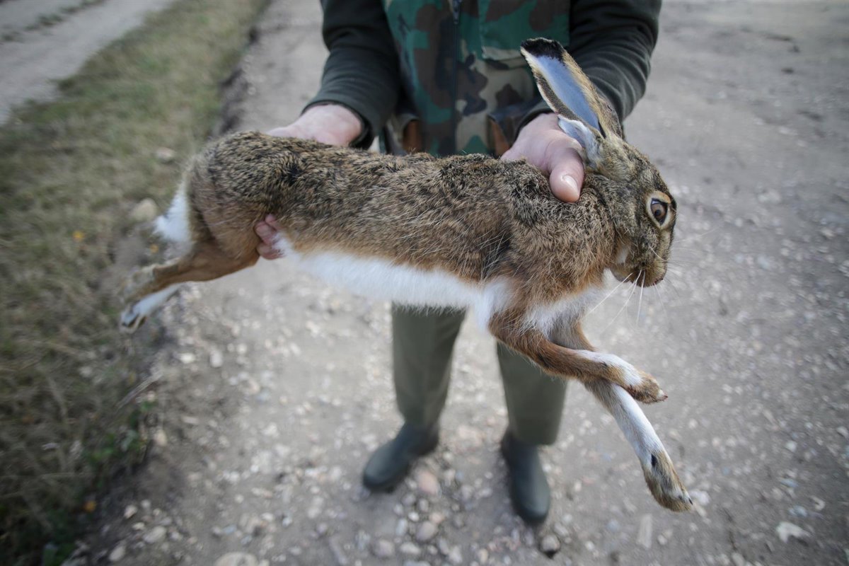 Archivo - Un cazador perteneciente al Coto de Cela recoge una liebre abatida en el Tecor Santa Isabel, a 16 de octubre de 2022, en Vilela, Outeiro de Rei, Lugo, Galicia, (España). El período hábil general para poder ejercer la actividad cinegética en Ga - Carlos Castro - Europa Press - Archivo