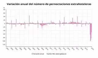 Este descenso interanual, el menor desde que estalló la pandemia del coronavirus, es resultado de la disminución de las pernoctaciones de los españoles en un 19,4% y del desplome en un 77% de las realizadas por los extranjeros.