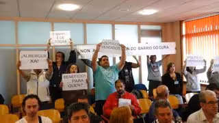 En ese momento, varios de los asistentes a la sesión comenzaron a corear consignas como "o Barrio do Cura non se vende", "non á especulación" o "o barrio é noso, e non deses mafiosos", en alusión a la iniciativa privada, que promoverá el desarrollo urbanístico de ese ámbito.