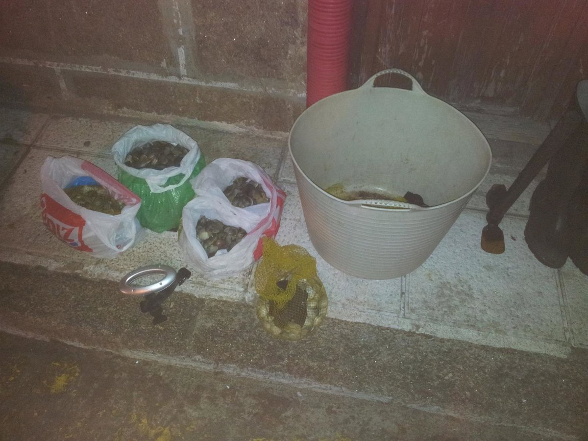 Los agentes observaron que llevaban un capacho con 12 kilos de almejas, además de cuatro azadas y otro material, como botas. Al preguntar por estos efectos, los identificados reconocieron que habían extraído el marisco sin autorización, por lo que se levantó acta para la correspondiente denuncia, y se devolvieron las almejas a la playa.