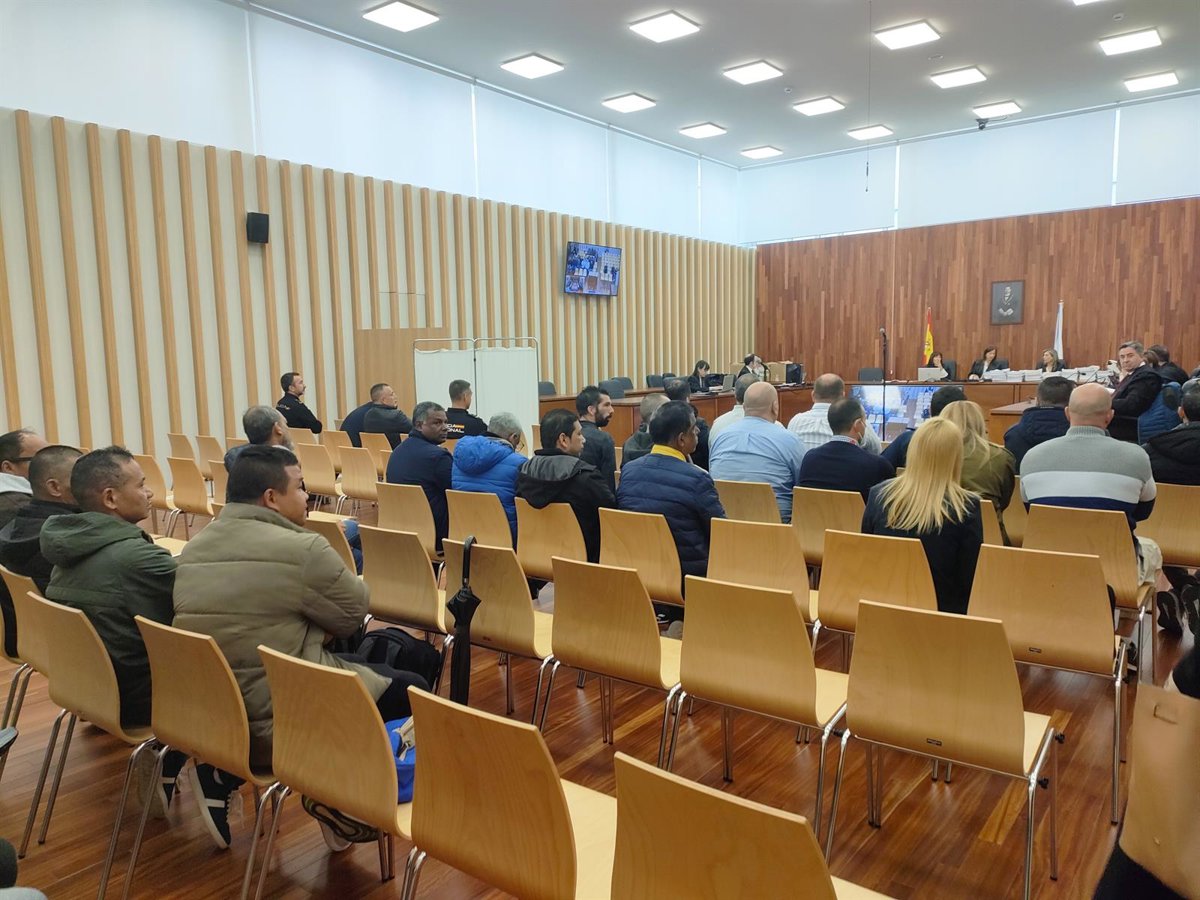 En este juicio, del que ya se han celebrado varias sesiones desde mediados de abril (después de varias suspensiones), se sientan en el banquillo de los acusados 28 personas: Juan Carlos Santórum, su hermano Ricardo, su cuñado Emilio X.R.C., Fidel F.B., Braulio V.V., Sergio F.O., Pablo y Marcos G.V., Ismael C.B., José Y.R.G., el colombiano René R.R., el exfuncionario de Aduanas Pablo S.V. y su mujer, y José Manuel B.G. (el único gallego que viajaba a bordo del MV Karar).