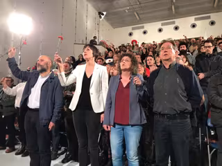 Así ha transcurrido el penúltimo mitin de esta carrera electoral con un marcado tono reivindicativo, coincidiendo con el 45 aniversario de la Revolución que puso fin a la dictadura salazarista en Portugal, que ha cobrado protagonismo nada más arrancar el acto con la interpretación de este himno revolucionario y pacífico en que el auditorio, con unas 400 personas, se levantó a cantar los versos de Zeca Afonso clavel en mano.
