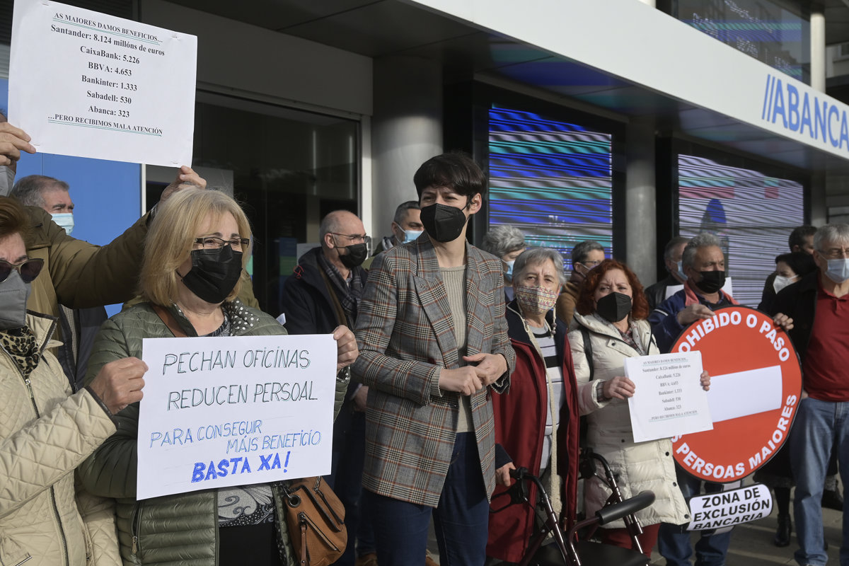 La portavoz nacional del BNG, Ana Pontón ha pedido este viernes que "la banca se adapte a las necesidades de las personas mayores, y no los mayores a los bancos", al tiempo que ha instado a la Xunta de Galicia a que, de la mano de organizaciones sindicales y sociales, lidere un "frente común" que "frene los abusos de la Banca en Galicia"-