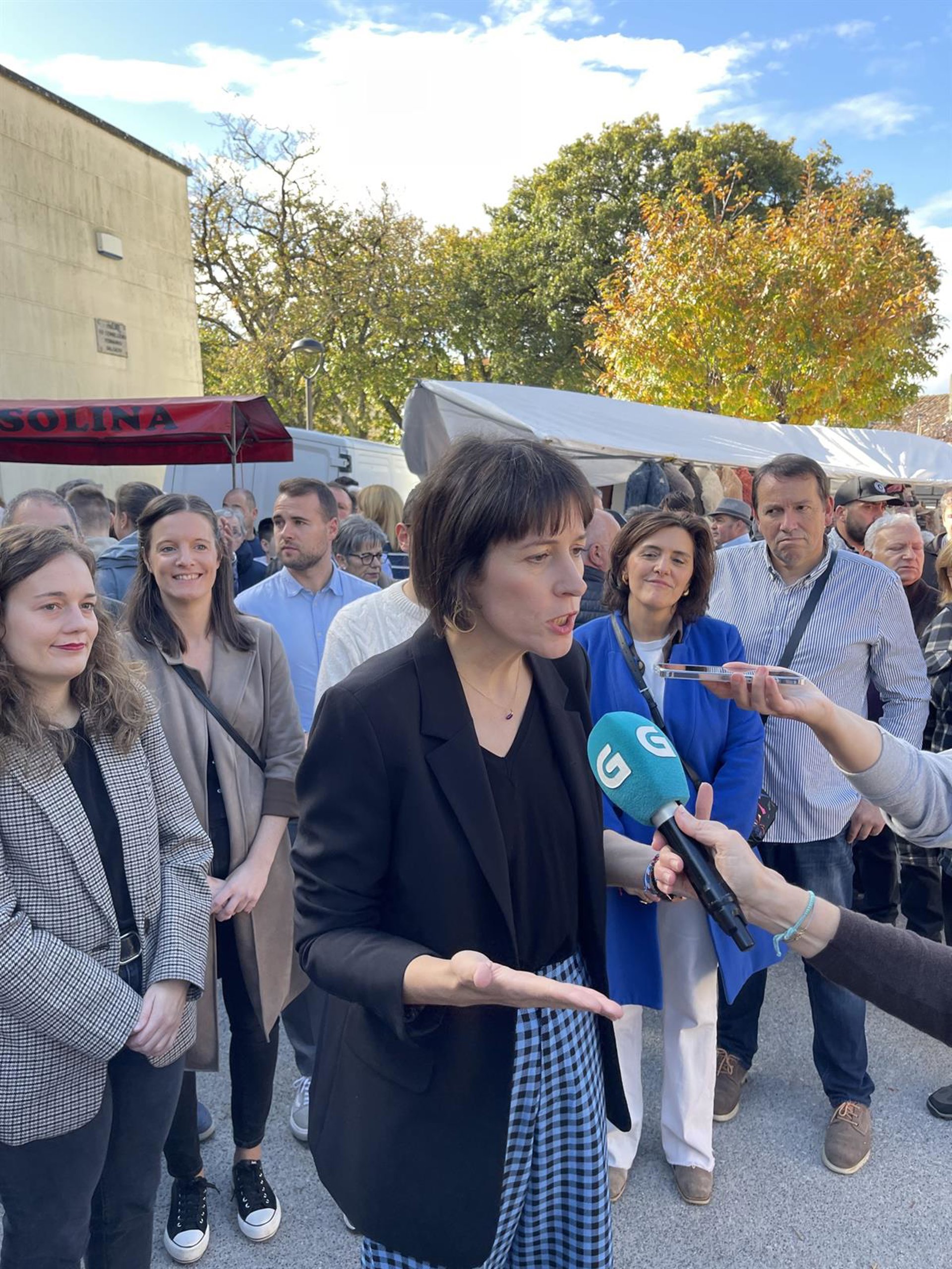 Ana Pontón habla con los medios en Monterroso. - BNG