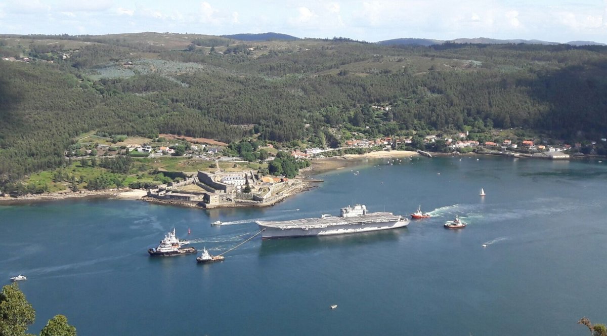 El portaaviones Príncipe de Asturias ha abandonado en la mañana de este miércoles las aguas interiores de la ría de Ferrol y ya viaja remolcado rumbo al puerto de Aliaga (Turquía), en donde será desguazado.