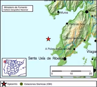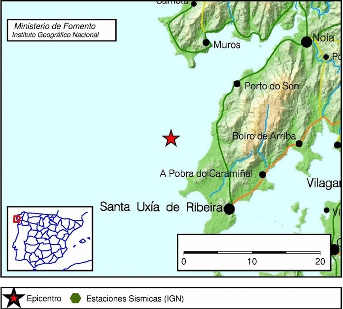 Según ha recogido el Instituto Geográfico Nacional (IGN), el epicentro del terremoto se ha situado en el Océano Atlántico, frente a las costas de la localidad coruñesa.