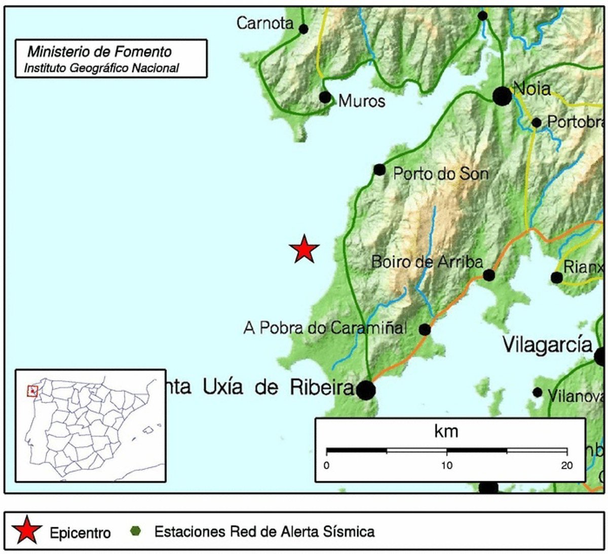 El terremoto registrado en Porto do Son se ha localizado a 42,66 grados Norte, 9,07 grados Oeste y una profundidad de seis kilómetros, con una magnitud de 2,7 grados.