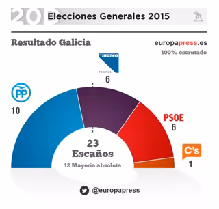 El PP ha logrado más de la mitad de los votos en un total de 108 ayuntamientos de Galicia, lo que supone más de un 34 por ciento de los municipios de esta comunidad, y ha sido la primera fuerza en 281 de los 314 en las elecciones generales de este 20D.