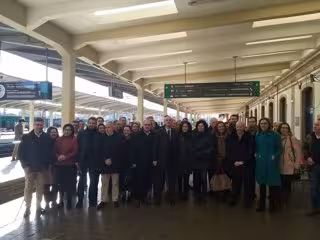 Comitiva del PP de Galicia y de la provincia de León en la estación de tren de Monforte de Lemos (Lugo). - PP