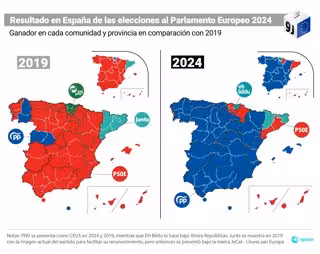 El PP ha logrado en las elecciones de este domingo recuperar la primera plaza en los comicios europeos, que en 2019 habían logrado los socialistas, al concentrar el 43,62% de los votos (casi 14 puntos más que hace cinco años), mientras que el BNG ha conseguido recuperar escaño propio en la Eurocámara.