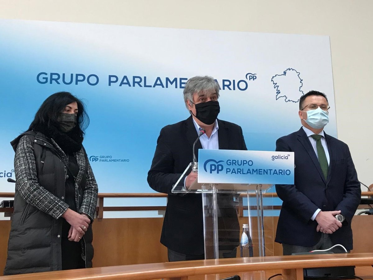 Pedro Puy, portavoz parlamentario del PPdeG, en la rueda de prensa de este lunes junto al conselleiro de Medio Rural, José González, y la diputada del PPdeG Elena Candia - EUROPA PRESS