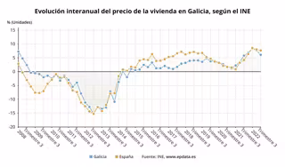 Evolución interanual del precio de la vivienda en Galicia, según datos del INE. - EPDATA-EUROPA PRESS