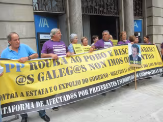 Miembros de la Plataforma de Afectados por Preferentes e Subordinadas de Compostela e Comarca amenazan con retomar las movilizaciones al conocer el recurso interpuesto contra la sentencia que le daba la razón a una vecina de la capital gallega, que obligaba a Abanca a devolverle unos 80.000 euros atrapados en estos productos.