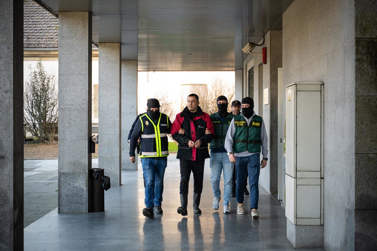 Pase a disposición judicial de uno de los detenidos en la última operación contra el narcotráfico, a 16 de enero de 2025, en Vilagarcía de Arousa, Pontevedra, Galicia (España). - Elena Fernández - Europa Press