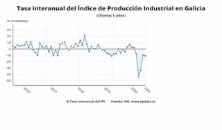 El índice general de producción industrial (IPI) bajó un 10,6% en julio en Galicia en relación con el mismo mes del año anterior, por encima del descenso registrado por la media (-6,4%), según los datos que publica este viernes el Instituto Nacional de Estadística (INE).