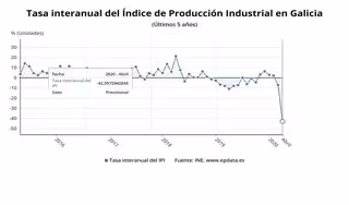 El Índice de Producción Industrial (IPI) en Galicia se ha desplomado durante el mes de abril, y ha caído un 43 por ciento, el mayor descenso a nivel nacional, según los datos que ha comunicado este viernes el Instituto Nacional de Estadística (INE).