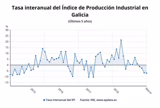 El Índice General de Producción Industrial (IPI) cayó en marzo un 6,9% en Galicia respecto al mismo mes de 2018, según los datos que publica este jueves el Instituto Nacional de Estadística (INE).