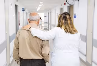 Un profesional sanitario acompaña a una persona mayor en un hospital - MÁXIMO GARCÍA DE LA PAZ-FUNDACIÓN LA CAIXA