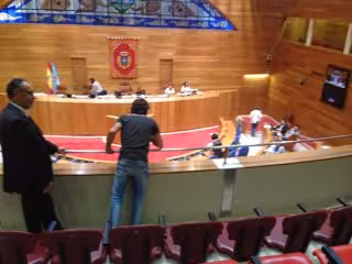 Ante la protesta y el estado de nerviosismo, la presidenta de la Cámara en ese momento ordenó desalojar la bancada de invitados, ante lo que uno de los trabajadores se resistía a dejar el hemiciclo con demandas de "trabajo" directamente dirigidas a la conselleira.