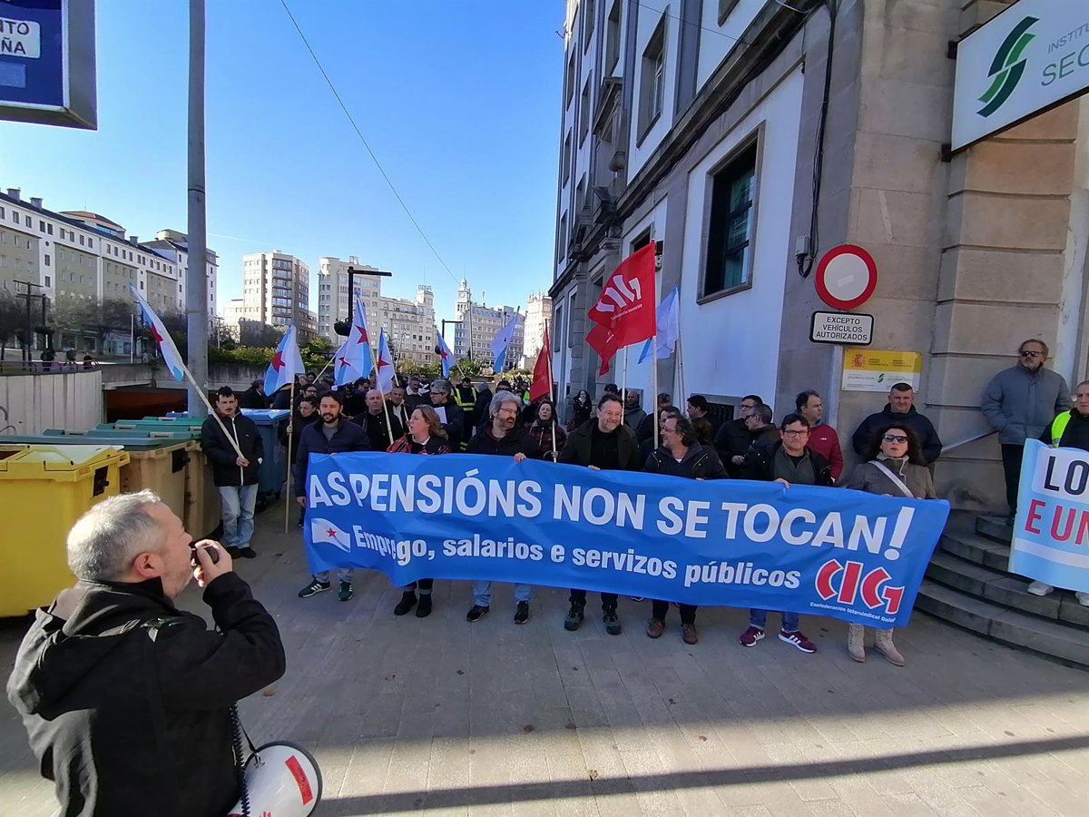 Carril participó en un concentración que han desarrollado desde las 11,30 horas ante la sede del Instituto Nacional de la Seguridad Social (INSS), a donde acudió en compañía de delegados y afiliados en una jornada que también se ha desarrollado en las otras seis grandes ciudades de Galicia, además de Ribeira (A Coruña) y en las localidades pontevedresas de Lalín y Vilagarcía.