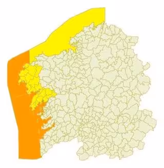 En el mar, el aviso es de nivel amarillo entre las 12,00 y las 15,00 horas, por olas de 4 a 5 metros en las Rías Baixas y en la zona oeste de la provincia de A Coruña. La alerta subirá a nivel naranja, por olas de 5 a 6 metros, en las mismas áreas, de 15,00 a 21,00 horas, bajando nuevamente a amarilla de 21,00 a 24,00.