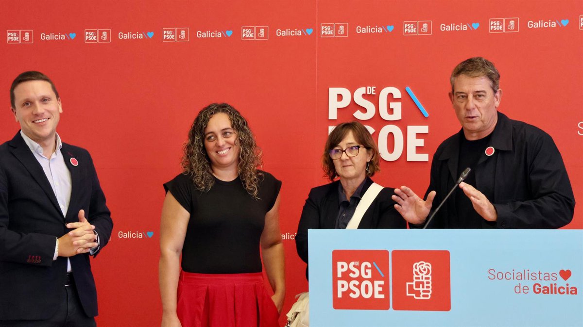 El secretario xeral del PSdeG, José Ramón Gómez Besteiro, en rueda de prensa con la presidenta y la vicepresidenta de la Confederación de Anpas Galegas - PSDEG