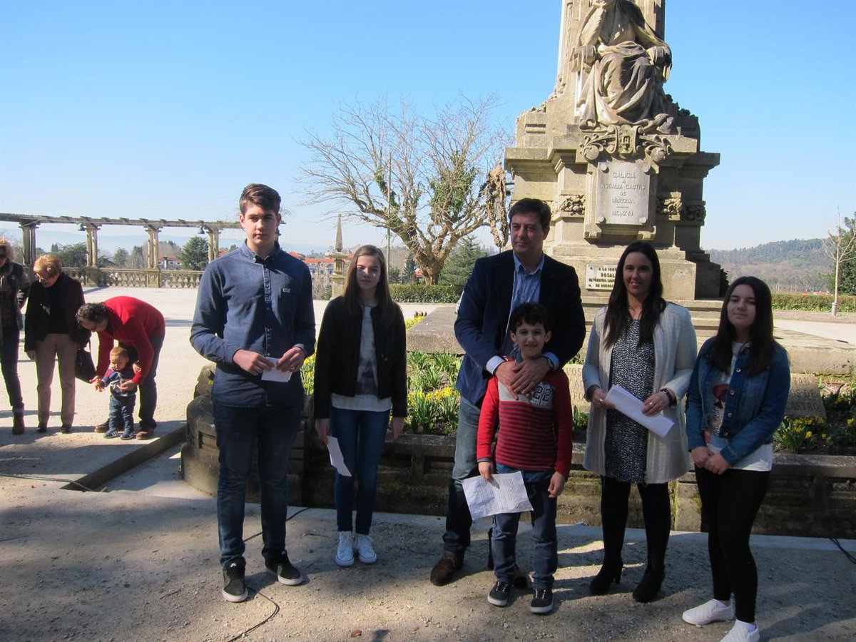 Tras realizar una ofrenda floral a Rosalía de Castro, varios niños han leído poemas para dar paso a la intervención del secretario xeral del PSdeG, en la que ha cargado contra la desigualdad entre sexos.