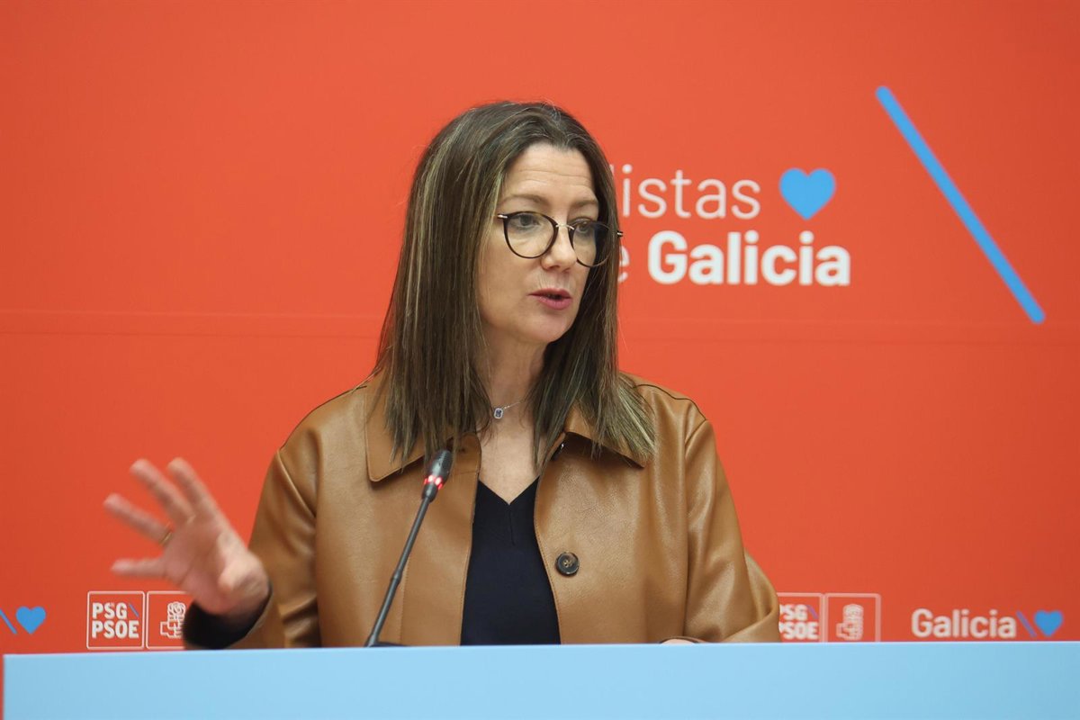 La secretaria de Organización del PSdeG, Lara Méndez, en rueda de prensa en el Parlamento de Galicia. - PSDEG