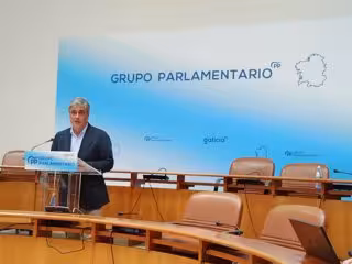 El portavoz parlamentario del PPdeG, Pedro Puy, en la rueda de prensa - EUROPA PRESS