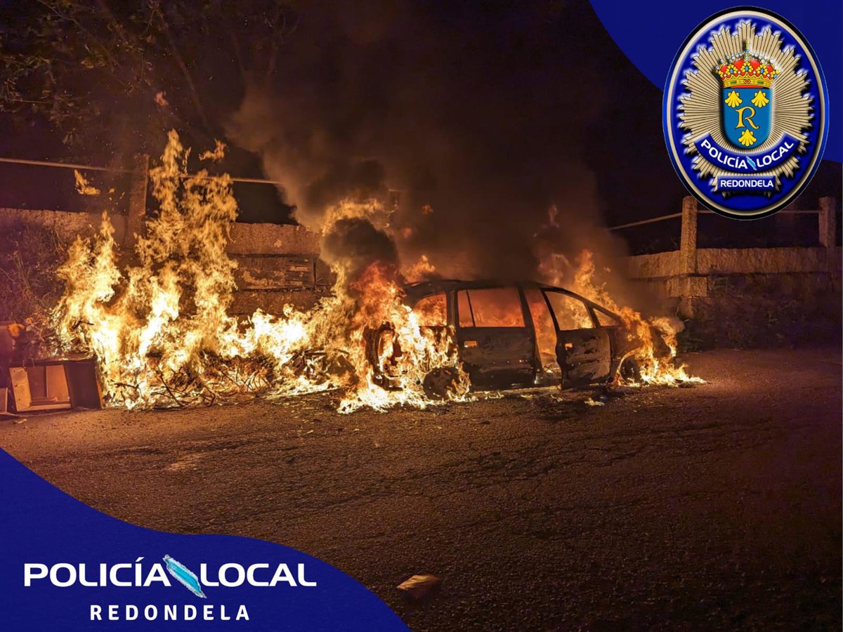Agentes de la Policía Local de Redondela (Pontevedra) y de la Policía Nacional acudieron en la madrugada de este pasado lunes al barrio de Chapela, donde se detectó un coche ardiendo.