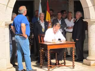 En su visita a Portomarín, Rajoy ha estado acompañado por el alcalde de la localidad, así como otros alcaldes de la zona. También han acudido el delegado del Gobierno en Galicia, Santiago Villanueva; el vicepresidente de la Xunta, Alfonso Rueda; la presidenta de la Diputación de Lugo, Elena Candia; y el portavoz del PP en el Senado, José Manuel Barreiro, entre otras autoridades.