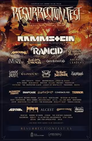 Rammstein, Rancid y Dropkick Murphys se encuentran entre las primeras confirmaciones que ha anunciado el festival 'Resurrection Fest' de Viveiro (Lugo), que el año que viene se celebrará entre los días 5 y 8 de julio.