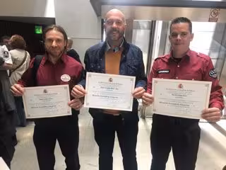 MK Norte y On Seguridad han sido las empresas del evento vigués cuyo trabajo se ha puesto en valor. Así, el diploma ha sido recogido por el responsable de seguridad del festival, Ángel Dieste, y los empleados Martín Fajín y Rafael Gómez, que han agradecido el reconocimiento público en representación de todo el equipo.