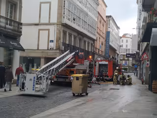 Al lugar del incendio se desplazaron también efectivos de la Policía Local. La calle donde se produjo el suceso ha sido cortada desde la confluencia con Rúa Nueva.
