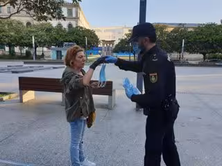 Las fuerzas y cuerpos de seguridad del Estado se han ocupado, además del reparto, de ofrecer orientación sobre el uso del material sanitario. "Se trata de un nuevo paso prudente hacia la nueva normalidad que no habría sido posible sin la concienciación y el compromiso de las personas", explica la Delegación del Gobierno.