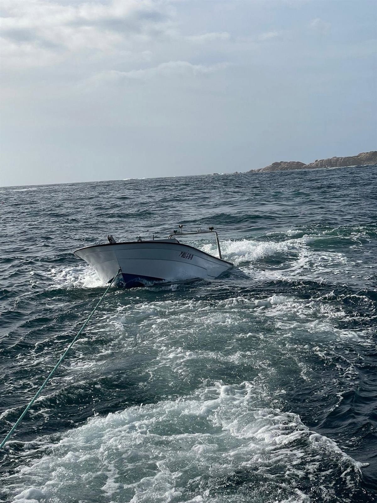 Una vez completado el desembarco de los rescatados, la embarcación auxiliar del María Pita regresó al lugar del naufragio para proceder al remolque de la embarcación.