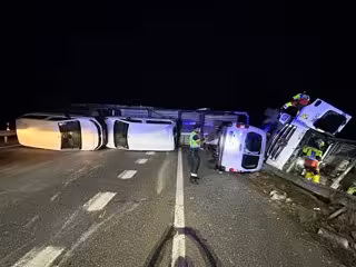 Así, los equipos de intervención trabajaron durante la madrugada para retirar tanto el camión como el resto de vehículos que transportaba y que también interrumpían el paso. Al mismo tiempo, los bomberos procedieron con la limpieza de un vertido de gasóleo y aceite para despejar la carretera, que se reabrió al tráfico pasadas las 06.00 horas.