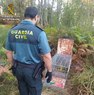La jaula, cuya presencia fue detectada y advertida por varios socios de la Comunidad de montes, según informa la Guardia Civil en sus redes sociales, tenía en su interior una bolsa con huesos a modo de cebo.