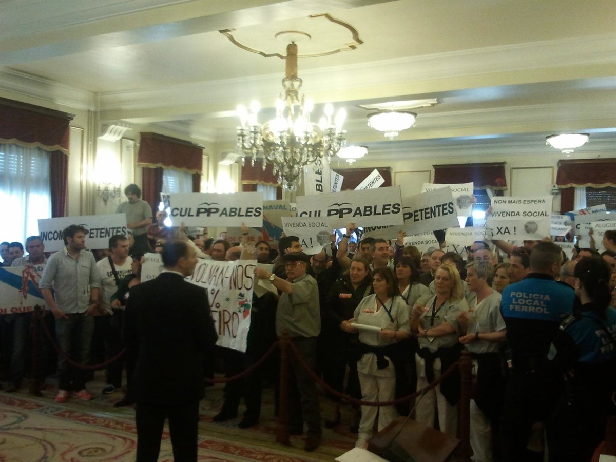 Fueron unas 500 personas, entre las que se encontraban trabajadores de Navantia, afectados por preferentes y miembros de Stop Desahucios, las que provocaron este jueves con sus protestas la suspensión del pleno municipal de Ferrol, en el que permanecieron durante casi una hora coreando cánticos de "dimisión" dirigidos al alcalde y al Gobierno local, encabezado por el PP.