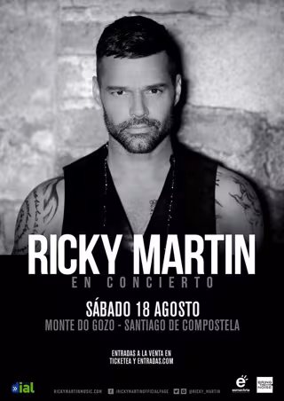 Ricky Martin actuará el 18 de agosto en el Monte do Gozo, en Santiago de Compostela, en el marco de una gira con una decena de conciertos por España este verano.
