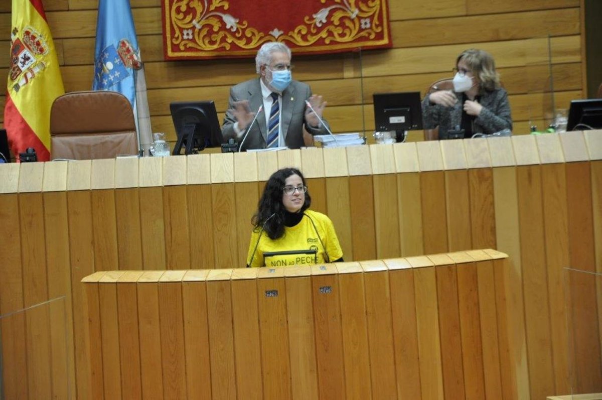 El portavoz del Grupo Popular, Pedro Puy, y el presidente de la Cámara, el también popular Miguel Santalices, mantuvieron un rifirrafe a costa de una camiseta que portó la portavoz del BNG en materia de energía, Noa Presas, en el pleno de la Cámara.