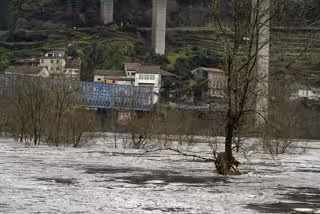 El río Miño continúa en la mañana de este sábado en estado de emergencia por riesgo alto de desbordamiento a su paso por la localidad de Os Peares, en el término municipal de A Peroxa (Ourense).