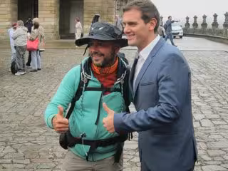 Al término del desayuno informativo, Rivera ha salido a la Praza do Obradoiro, donde se ha fotografiado con varios turistas y peregrinos.