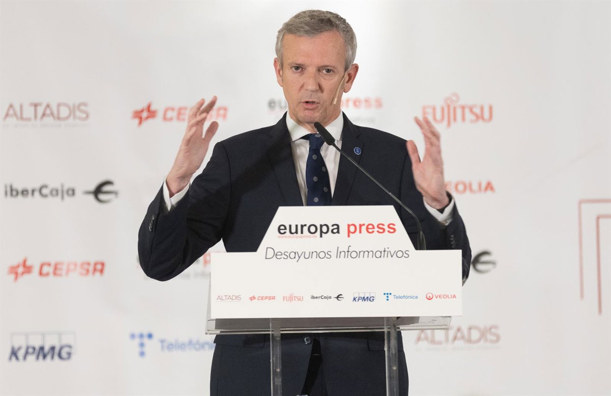 "Hacen esa correlación de que si las cosas van mal en Galicia, la culpa será de quien estuvo 14 años", ha denunciado Alfonso Rueda durante su intervención en un desayuno informativo de Europa Press, en el que precisamente ha sido presentado por su predecesor en el cargo y actual presidente del PP a nivel nacional.