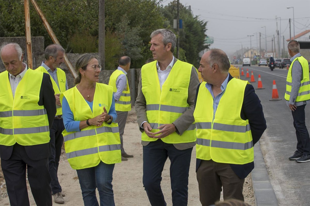 El presidente de la Xunta, Alfonso Rueda, la conselleira de Infraestruturas e Mobilidade, Ethel Vázquez, y el alcalde de Vilanova de Arousa (Pontevedra), Gonzalo Durán, visitan las obras de una senda peatonal. - XUNTA
