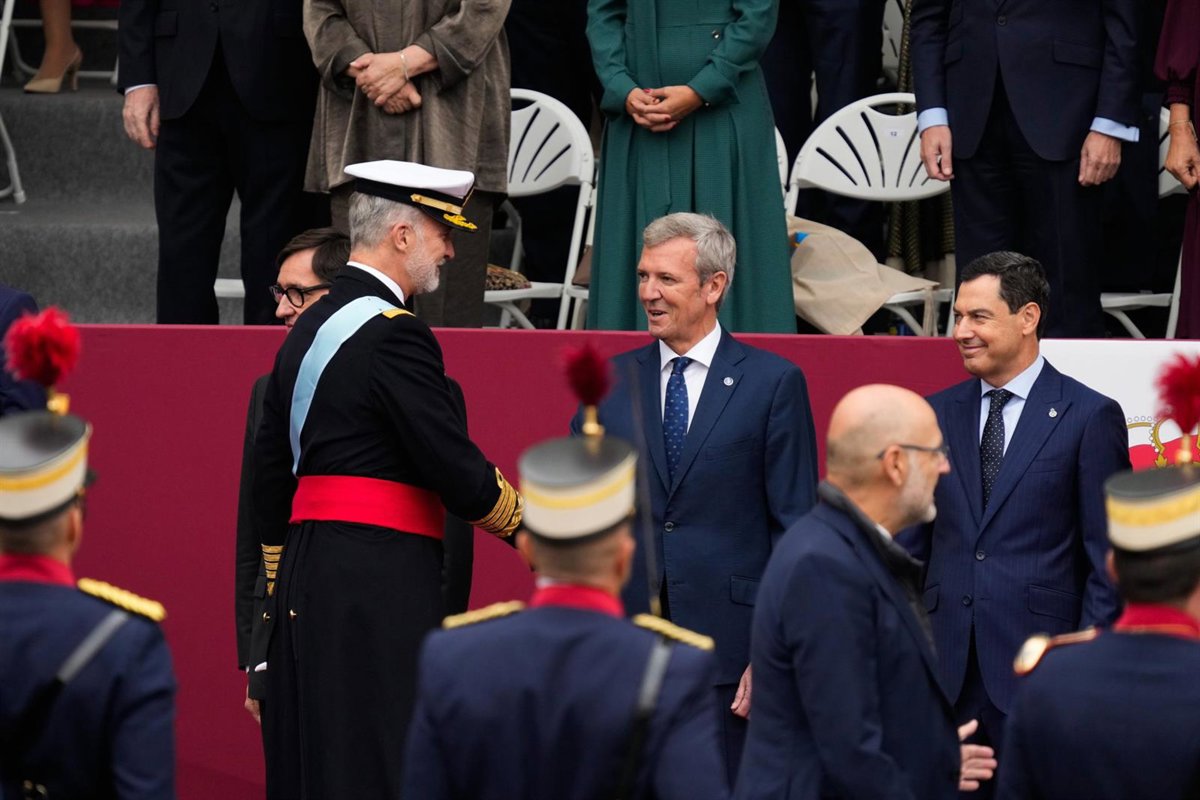 El presidente de la Xunta, Alfonso Rueda, ha participado este domingo en Madrid en los actos para conmemorar el Día de la Hispanidad, primero en el tradicional desfile militar y posteriormente en la recepción que ofrecen los Reyes en el Palacio Real.