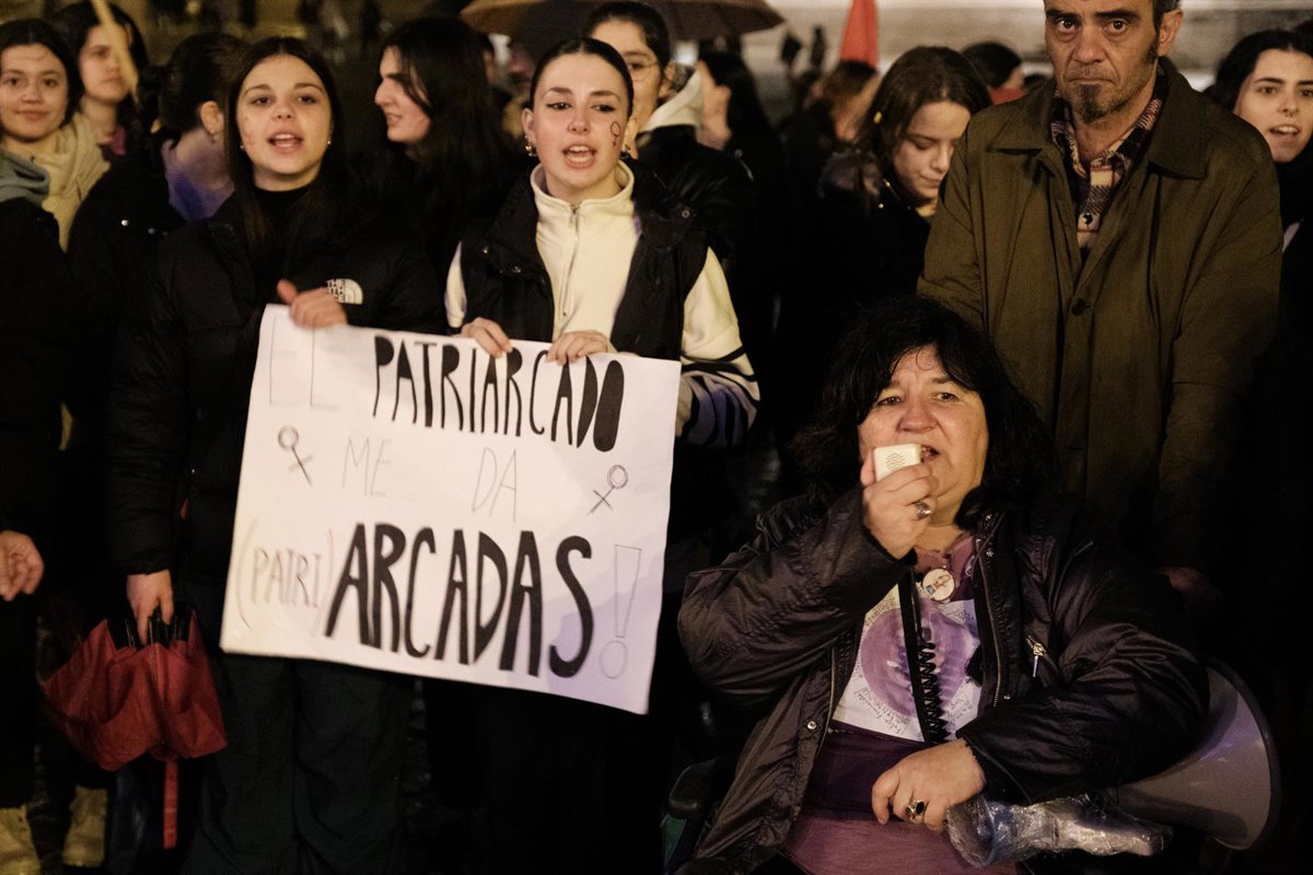 Varias mujeres protestan con carteles durante una manifestación convocada por Plataforma Feminista Galega, por el 8M. - César Arxina - Europa Press