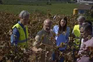 Rueda durante la visita a los viñedos de la Bodega Tapias Mariñán afectados por los incendios. - Rosa Veiga - Europa Press