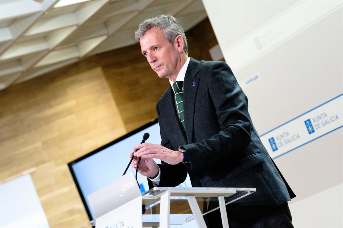 El presidente de la Xunta, Alfonso Rueda, en rueda de prensa tras el Consello. - XUNTA