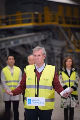 El presidente de la Xunta, Alfonso Rueda, en una visita a la planta de Sogama en Vilanova de Arousa (Pontevedra). - XUNTA